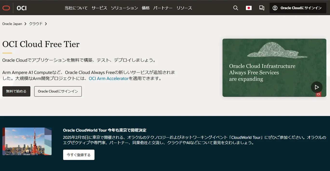 また、国内で使える無料インスタンスはこの他ないでしょう。